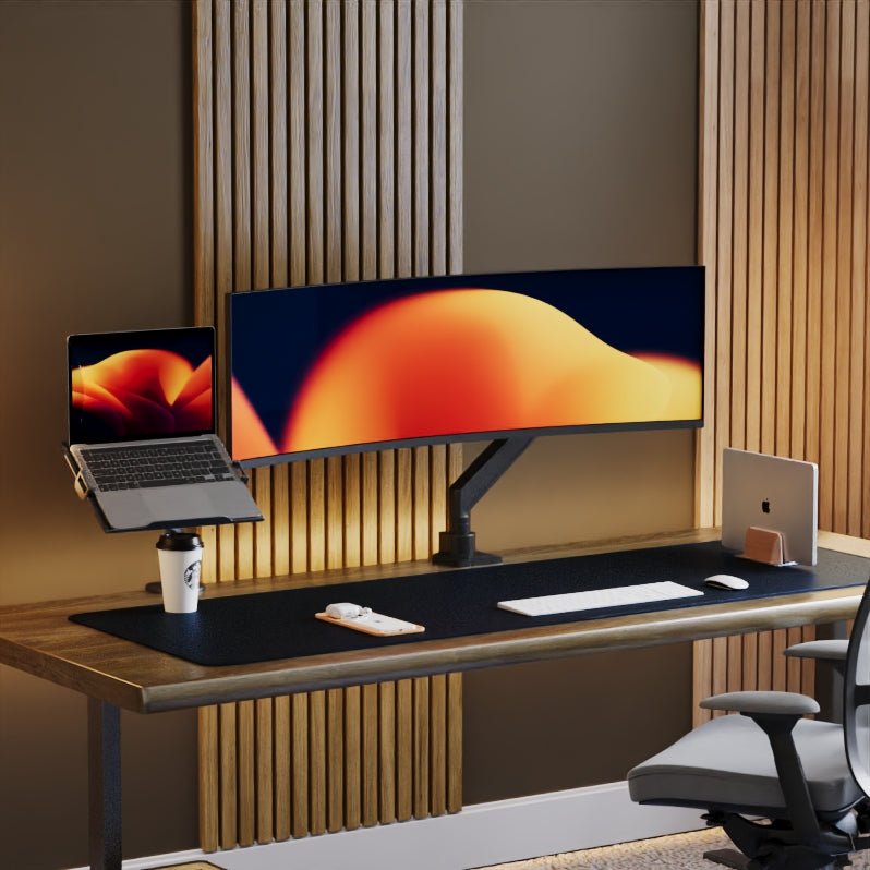 Lösungen für jedes Schreibtisch-Setup. Von einer einfachen Einzelmonitorhalterung bis hin zu einer Halterung, die den größten verfügbaren Monitor (57 Zoll) unterstützt.