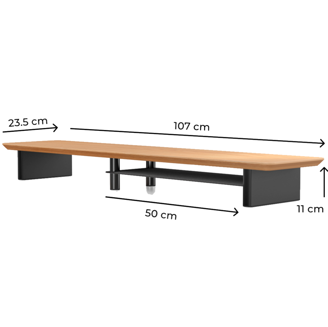 Rymliga mått – 107 cm bred, idealisk för två skärmar (upp till 27”) eller en ultrabred skärm (upp till 49”).