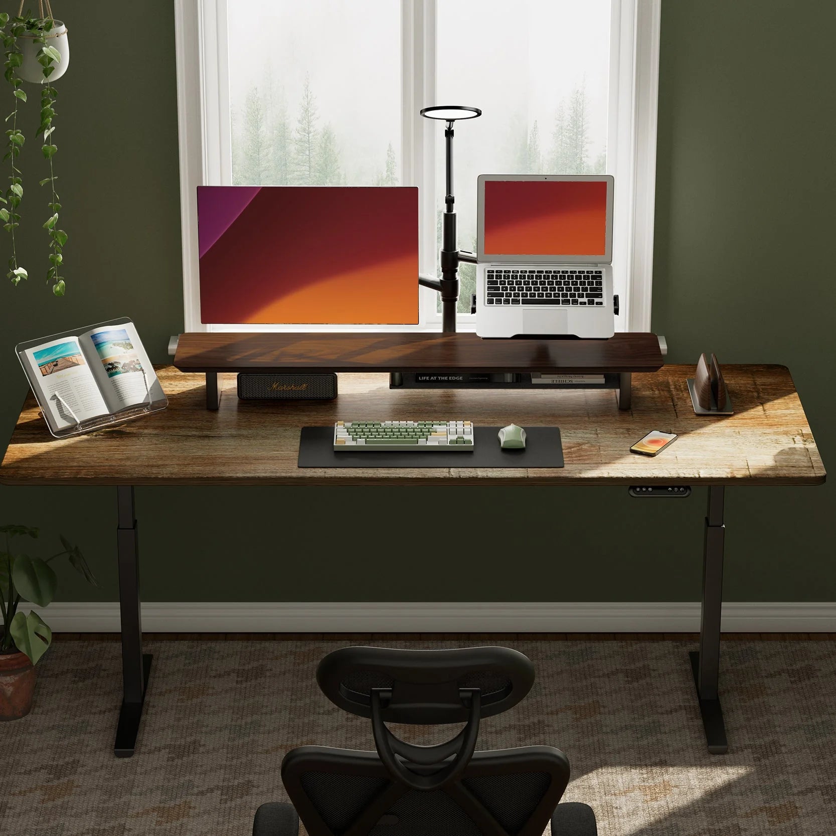 Gör din arbetsplats komplett med Alberenz® Valnöt Monitorställ och upplev den perfekta balansen mellan design, komfort och funktion.