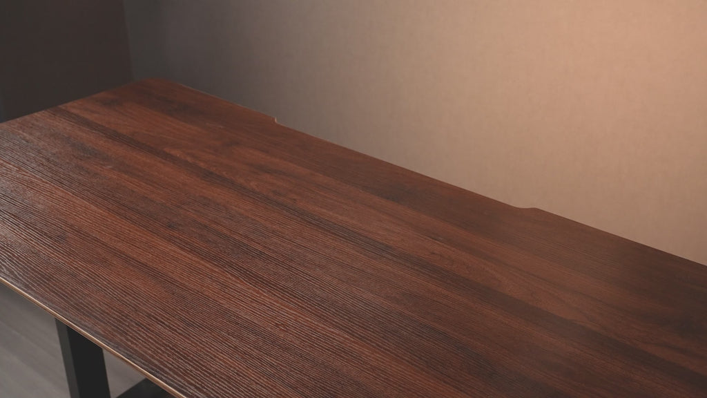 Med en generös bredd på 107 cm får du enkelt plats med två skärmar upp till 27” eller en ultrabred skärm upp till 49”. Det öppna utrymmet under är perfekt för att förvara tangentbord och mus, så att skrivbordet hålls prydligt och organiserat. Den starka och hållbara konstruktionen klarar upp till 30 kg, vilket passar bra för tunga skärmar eller flera enheter. Den lyxiga valnötsfinishen ger en varm och exklusiv känsla till din arbetsplats, så att jobbet blir både bekvämare och snyggare.